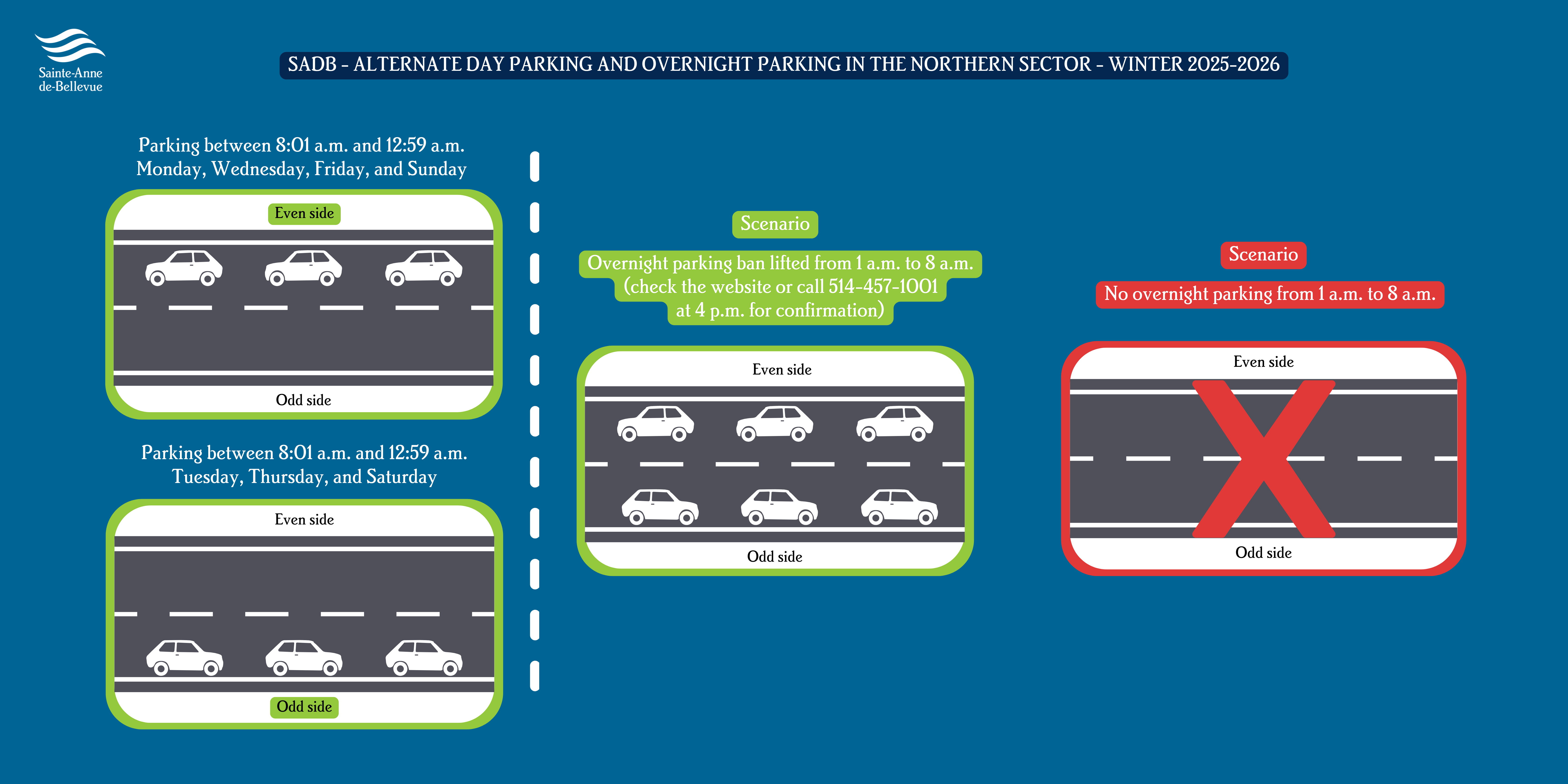 In the absence of a notice, overnight parking is still prohibited on all Sainte-Anne-de-Bellevue streets to ensure efficient snow removal. Snow removal operations remain a priority over overnight parking.