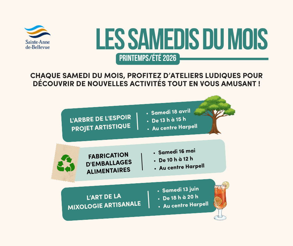 Le service des loisirs est fier de vous présenter sa nouvelle programmation : « Les samedis du mois ».