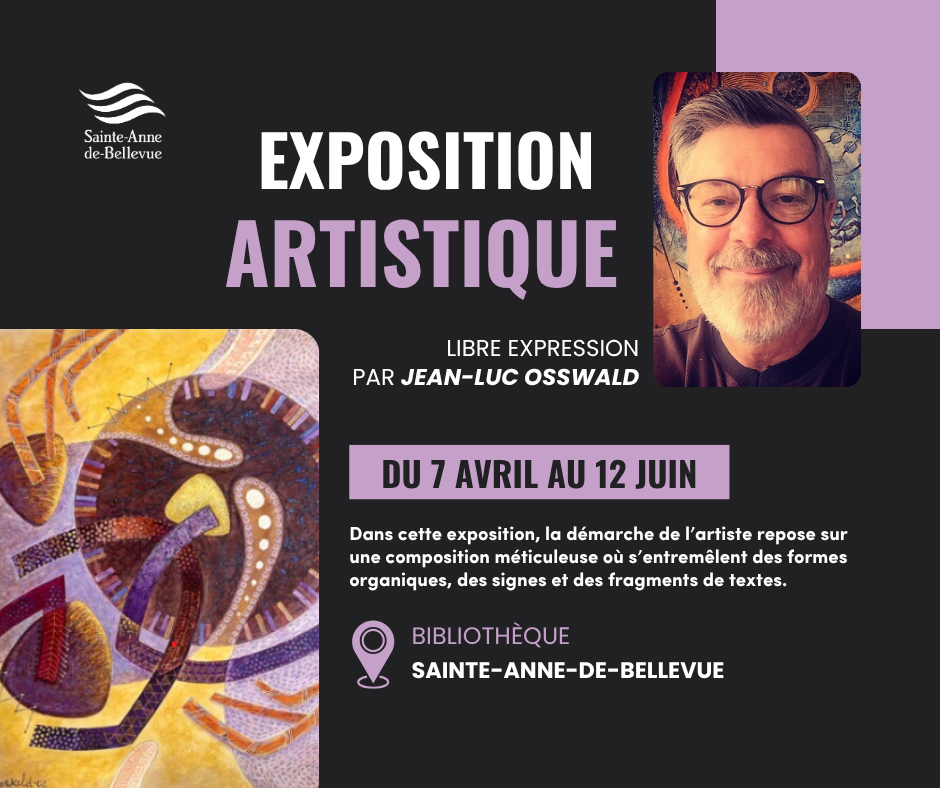 Plongez dans l’univers vibrant de M. Jean-Luc Osswald, artiste local passionné. Dans cette exposition, la démarche de l’artiste repose sur une composition méticuleuse où s’entremêlent des formes organiques, des signes et des fragments de textes.