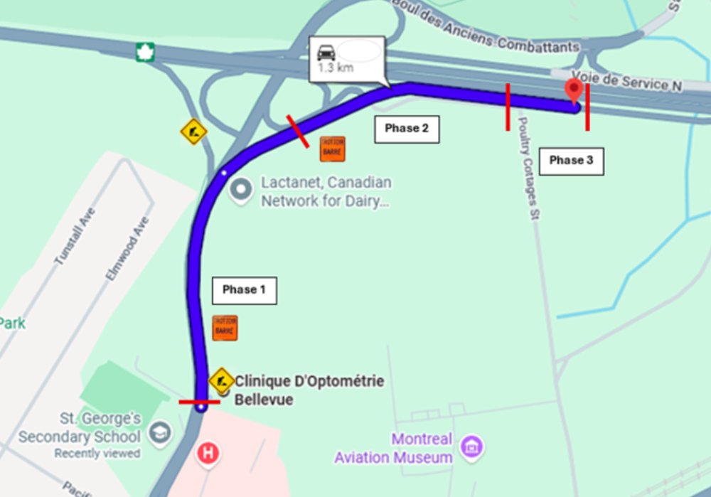 Des travaux de raccordement sur le boulevard des Anciens-Combattants du 6 janvier au 31 juillet 2026Dans le cadre du contrat cadre de maintenance civile des infrastructures souterraines, des travaux de raccordement seront réalisés par Hydro-Québec pour le Square Bellevue, du 6 janvier 2026 au 31 juillet 2026, entre 7 h et 17 h.